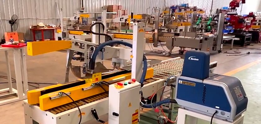熱熔膠折蓋封箱機(jī)是一款既高效又環(huán)保的自動化包裝設(shè)備,該機(jī)可以選擇只熱熔膠封箱,也可選擇熱熔膠與膠帶同時(shí)封箱,效果更佳。艾訊熱熔膠封箱機(jī)配置美國諾信膠機(jī),性能穩(wěn)定,噴膠效果好,售后有保障。廣泛用于食品、藥品、化工、電商等領(lǐng)域。