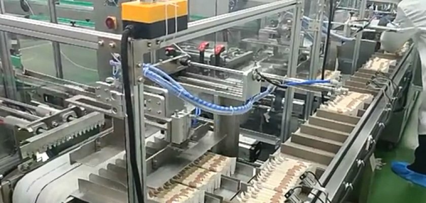 全自動(dòng)裝盒機(jī)是一款全自動(dòng)開(kāi)盒、裝盒、封盒為一體的自動(dòng)化包裝設(shè)備,該機(jī)可采用插舌、噴膠、扣底扣、自扣底等方式對(duì)紙盒進(jìn)行成型,同時(shí)自動(dòng)理料并將物料裝進(jìn)紙盒,再對(duì)紙盒進(jìn)行封口,多用于食品、藥品、電子元器件等領(lǐng)域。