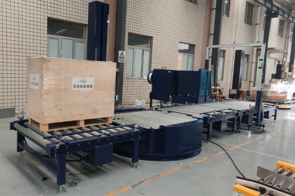 該線體主要實現(xiàn)對白卡紙紙卷捆扎和纏繞,線體一共由三部分組成:棧板穿劍捆扎機,托盤在線纏繞包裝機,滾筒輸送機。如用戶有其他包裝需求,該線體亦可配套覆頂膜機、水平捆扎機、護角機、在線貼標噴碼等設備。