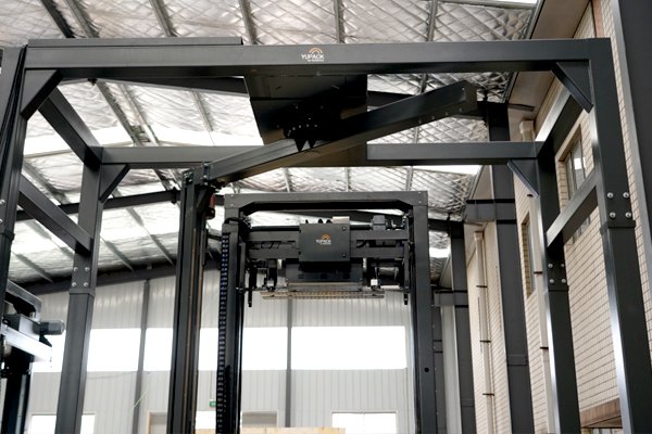 進行捆扎方式讓包裝物與托盤的固定更加緊密,為兼容不同的托盤寬度,選用了拂膜方式的搖臂纏繞機,大小托盤均可兼容,包裝效果穩(wěn)定、效率高。