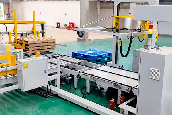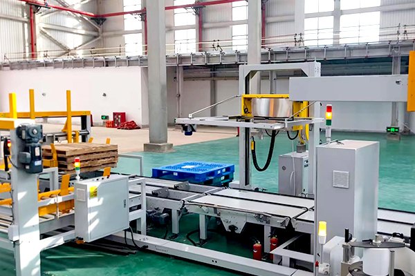 該碼垛機最大特點是負載大,可同時碼2個 200kg的鐵桶,線體后端可配合捆扎機或托盤在線纏繞機,實現(xiàn)對桶的固定。多用于液體膠、硅橡膠等化工行業(yè)以及潤滑油等液體類行業(yè)使用。