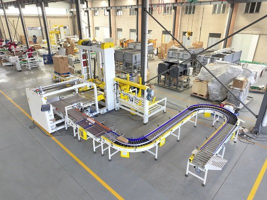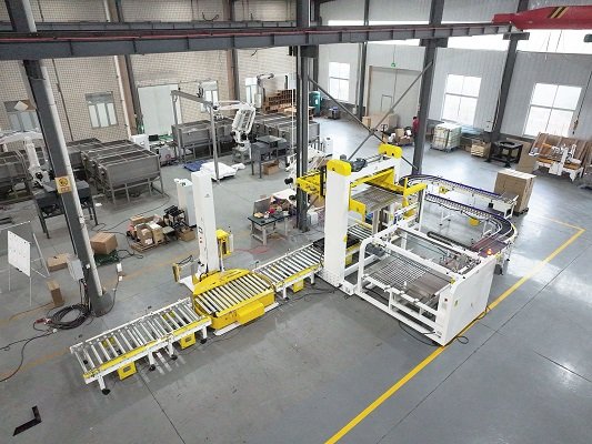 紙箱龍門低位碼垛線是由紙箱整理線、低位碼垛機(jī)、自動供棧機(jī)、在線纏繞機(jī)以及托盤輸送機(jī)等設(shè)備組合而成。該線體主要針對紙箱的整層碼垛而設(shè)計(jì),可根據(jù)用戶提前設(shè)計(jì)好的垛型,將紙箱提前整理出需要的垛型樣式,紙箱處理速度高度33箱/分,較之普通的機(jī)器人碼垛,效率快很多,同時(shí)配合自動供棧及在線纏繞機(jī)等自動化包裝設(shè)備,完全紙箱和托盤的無人化包裝,自動化程度高,運(yùn)行成本低。