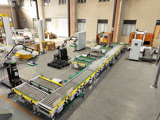 全自動(dòng)伺服封箱機(jī)是采用伺服電機(jī)為主要驅(qū)動(dòng)機(jī)構(gòu),針對不同紙箱的混產(chǎn)情況,用戶可提前將所有紙箱錄入封箱機(jī)內(nèi),由上位機(jī)與封箱機(jī)通訊,可實(shí)現(xiàn)紙箱的一鍵換產(chǎn),一字封與工字封可任意切換和選擇,尾端配有貼標(biāo)和移載機(jī)構(gòu),由光電識別將不同的紙箱碼到不同的托盤上,該線體配備了進(jìn)口協(xié)作式機(jī)器人,立柱可升降,充分滿足不同高度及垛型的需求。性能更穩(wěn)定,占地面積小,成本低。