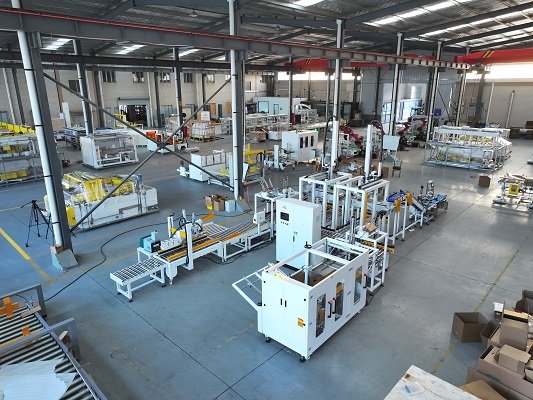 該線體將兩條包裝線合流在一起,共用一套開(kāi)箱機(jī)和封箱機(jī),既節(jié)省場(chǎng)地,又降低成本。尾端其實(shí)也可以配置紙箱的在線捆扎以及托盤(pán)的碼垛設(shè)備,形成紙箱以及托盤(pán)的全產(chǎn)線自動(dòng)化包裝。