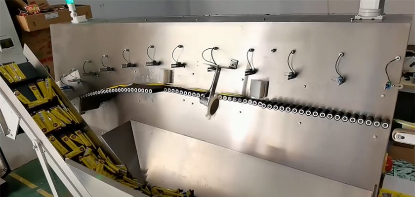 無序理料機也叫自動理袋機,可在生產(chǎn)中單獨使用,也可以與裝盒機對接,完成無規(guī)則的堆積物料從集中到分散再到順序擺放的整個整理過程。它是將無規(guī)則堆積物料倒入儲料倉后,料倉輸送帶動作,將物料輸送至低速滾輪上。無序理料機通過低、中、高速滾輪的運轉(zhuǎn),將物料逐一順序送出理袋機。 送出的物料根據(jù)包裝需要的形式或順序或堆疊進(jìn)入裝盒機輸送當(dāng)中完成下一工序的裝盒過程。