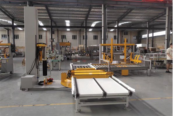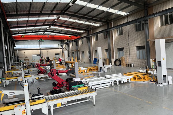 該線體涵蓋紙箱的開封箱機、自動裝箱機、自動供棧機、碼垛機器人、在線纏繞機輸送機等6大單元,三線并行,實現(xiàn)了全無人化操作,是完整的全自動化包裝流程典范。