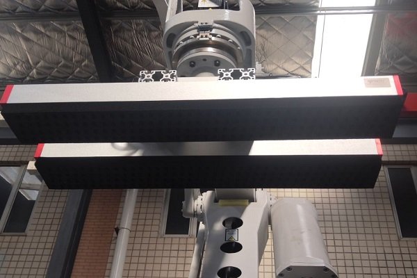 軍工行業(yè)包裝線的最大特點就是物料重、體積大,因此在碼垛機器人的選擇上也必須配套大負載、頻率高且運行穩(wěn)定的設備,同時可配以頂壓機芯捆扎機,實現(xiàn)PET帶的井型捆扎,可將物料與托盤緊密的固定,同時配以懸臂纏繞包裝機,實現(xiàn)雙重保護。
