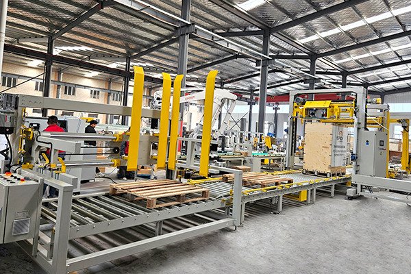 電動工具托盤碼垛通過式覆頂膜纏繞捆扎包裝線,是由自適應(yīng)型供棧機(jī)、機(jī)器人碼垛機(jī)、棧板穿劍捆扎機(jī)、通過式覆頂膜機(jī)以及搖臂式纏繞包裝機(jī)組合而成。自適應(yīng)型供棧機(jī)可根據(jù)不同托盤尺寸,自動調(diào)整機(jī)器并分配托盤,節(jié)省了人工換產(chǎn)的時間。